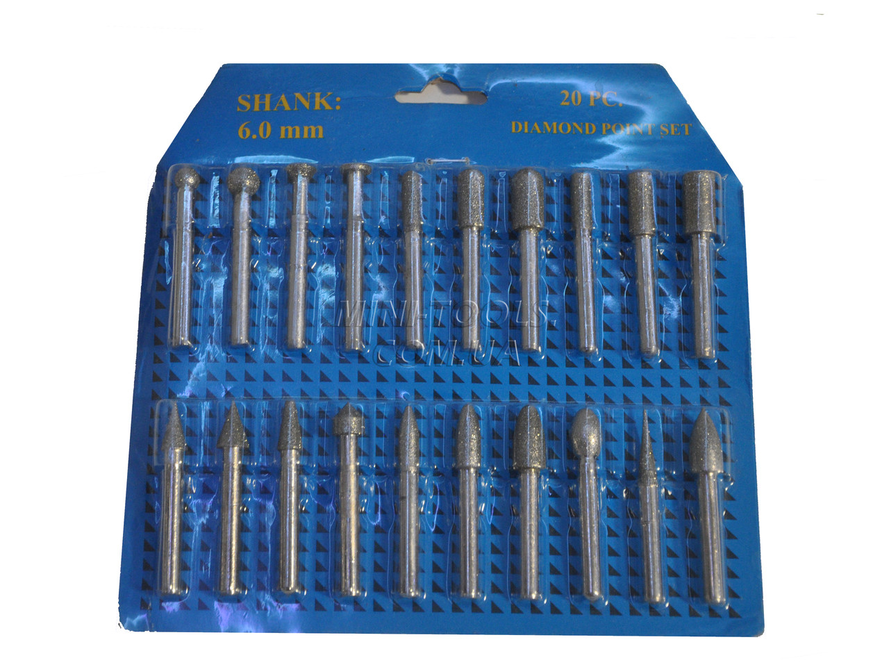 Набір алмазних борів, великої зернистості з 20 штук.